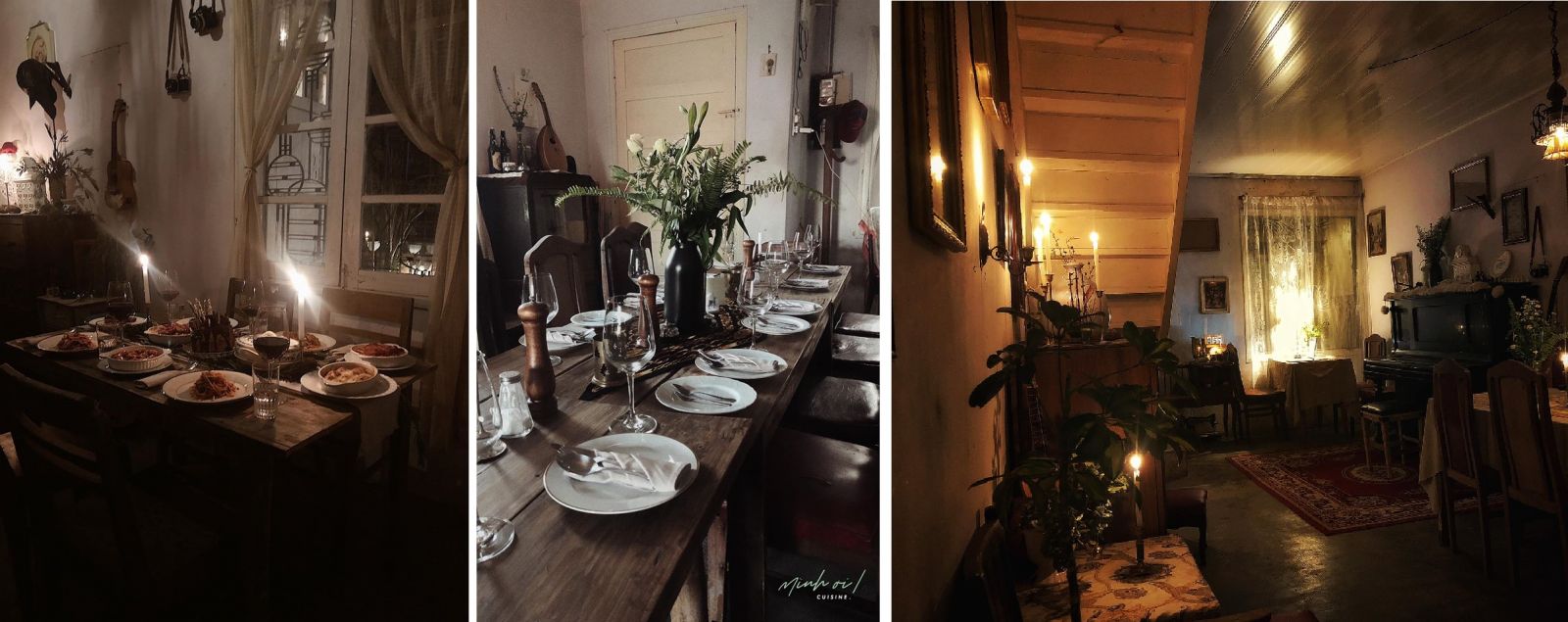 Tọa lạc tại số nhà cũ 152 trên con đường gần trung tâm thành phố, đúng như tên nhà hàng: Mình ơi!, không gian bên trong được trang trí rất cổ, không mới, không lung linh. Tất cả vật dụng đều được người chủ tận dụng từ các món đồ cũ như bàn ghế, khăn trải bàn, vật trang trí, ... Chính vì vậy, nó tạo nên một sự bình yên, mơ mộng và cả dịu dàng. Đến đây, cùng ngôi bên nhau dưới ánh nến, thưởng thức những ly rượu vang cùng các món ăn từ Á sang Âu, bạn sẽ cảm nhận được sự bình yên và hạnh phúc khi ở cạnh người thương.